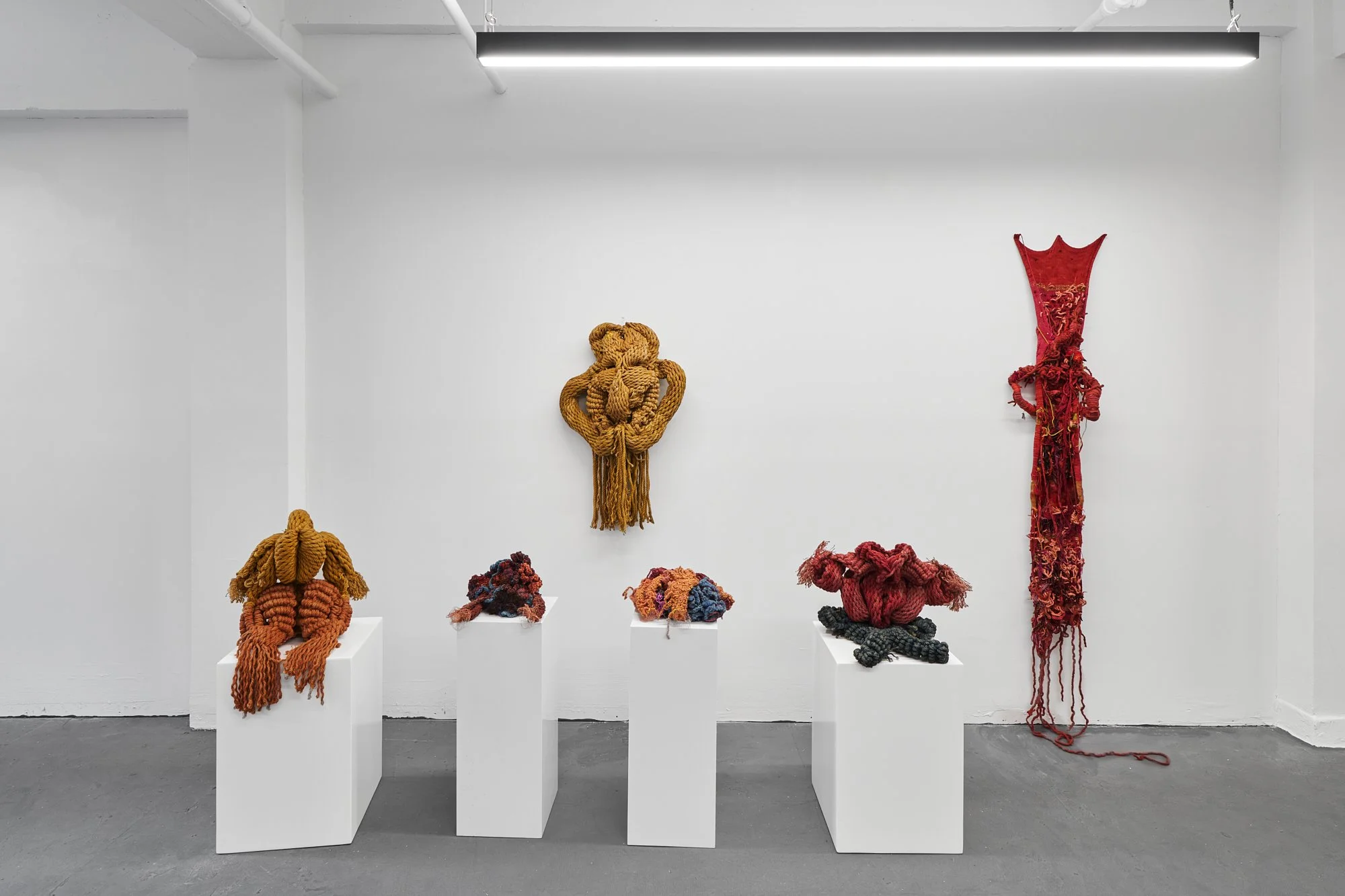 Eliza Axelson-Chidsey’s pieces include large scale furnishings that combine an interest in 3D puzzles, standardized materials, and a quest for adiabatic design. Jess Fügler prompts the viewer to look closer at her whimsical combination of handcrafted details and industrial production in furniture and lighting inspired by personal memories. Kate Ferguson, working under the project name Katharine.NF, challenges conventions around ornament and functionality in decor to present vibrant, soft-sculptural forms that evoke feelings both tender and macabre.