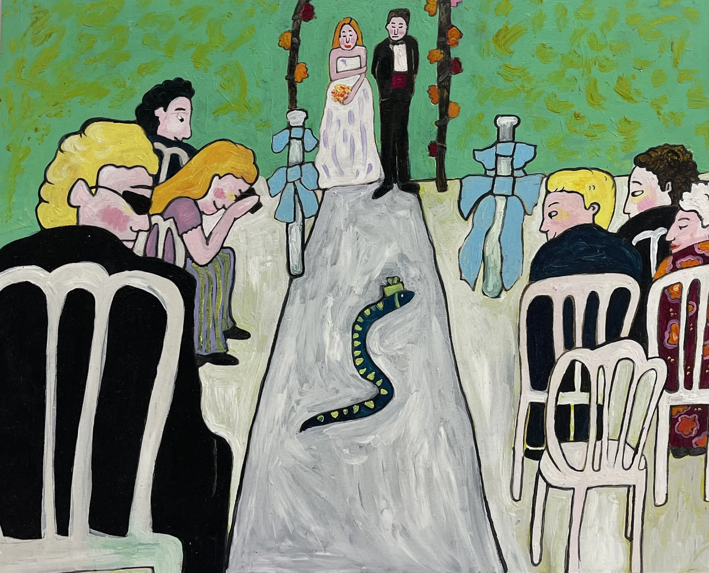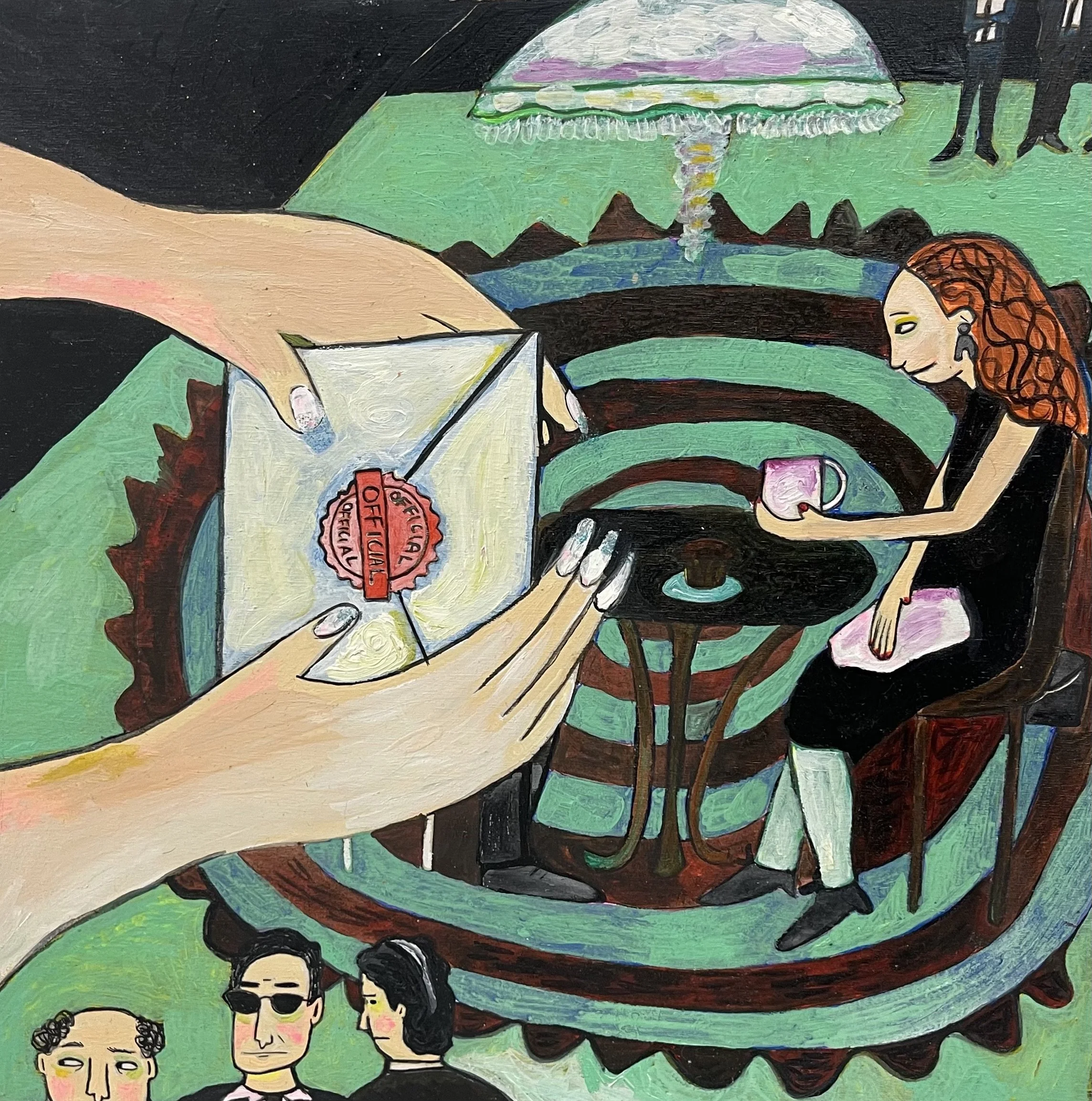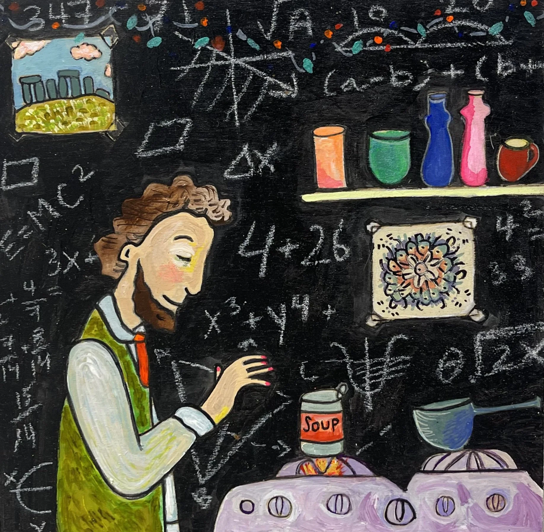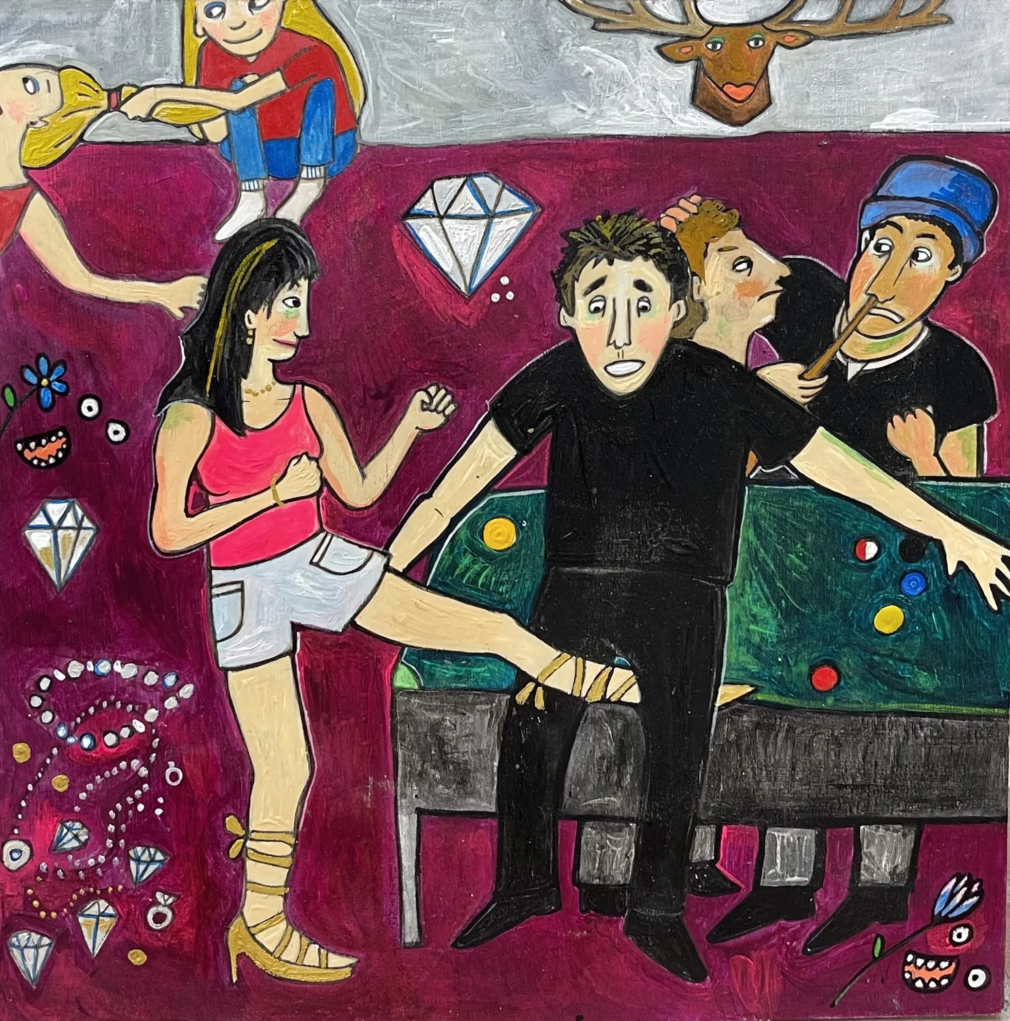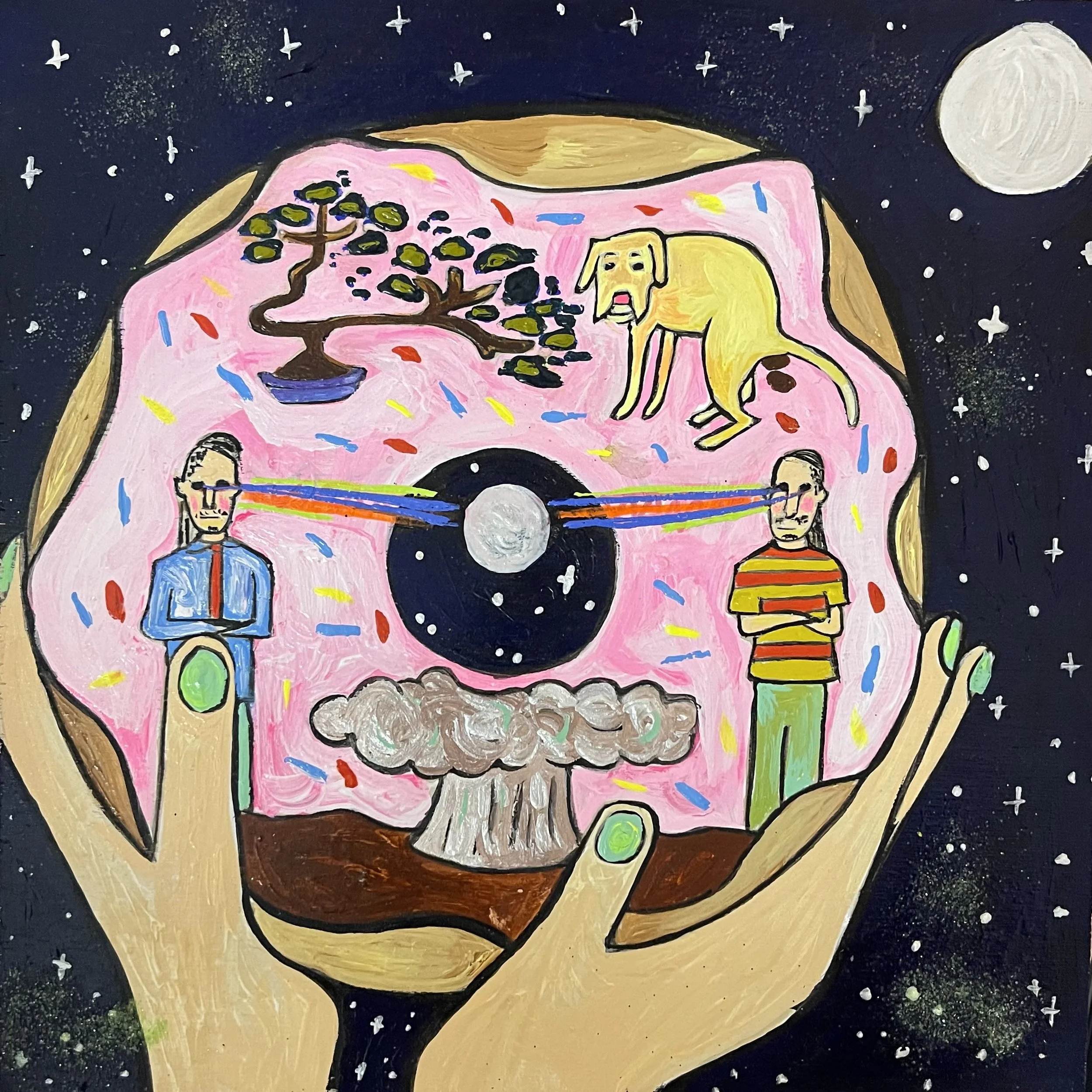 Buddhist teacher Dzongsar Khyentse Rinpoche has said that a knife becomes sharp as the result of "two exhaustions"--the exhaustion of the sharpening stone and the exhaustion of the metal. In the same way, he continues, "enlightenment is the result of the exhaustion of obscurations and the exhaustion of the antidote of obscurations." Liz Scheer sharpens the knife of her 'painting-poems' by rubbing together two disparate narratives (one visual and one verbal) that have respectively 'maxed out' their claims to reality. By pairing small jewel-toned paintings with patches of fiction pulled from a nonexistent ur-text, Scheer's work portrays the unexpected clarity that arises in moments of spiritual depletion. Through its uncanny iconography born from New Age paraphernalia and the culture of New England and the Midwest, Scheer's work portrays a kind of quotidian transcendence suffused with poignancy and humor.