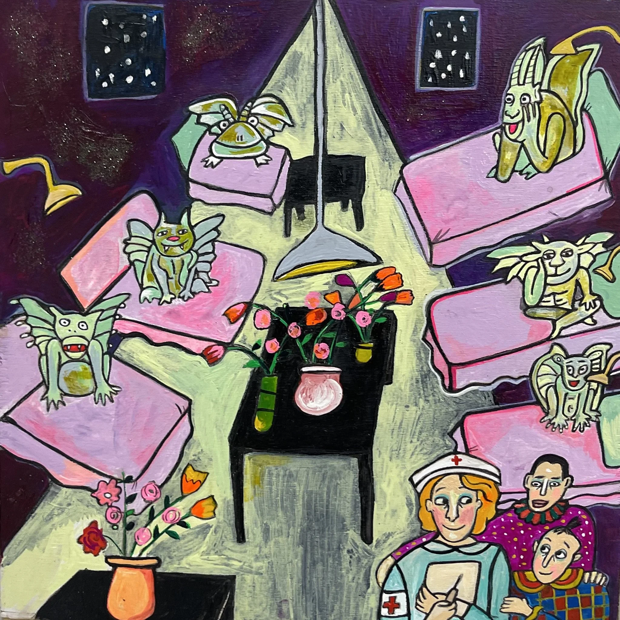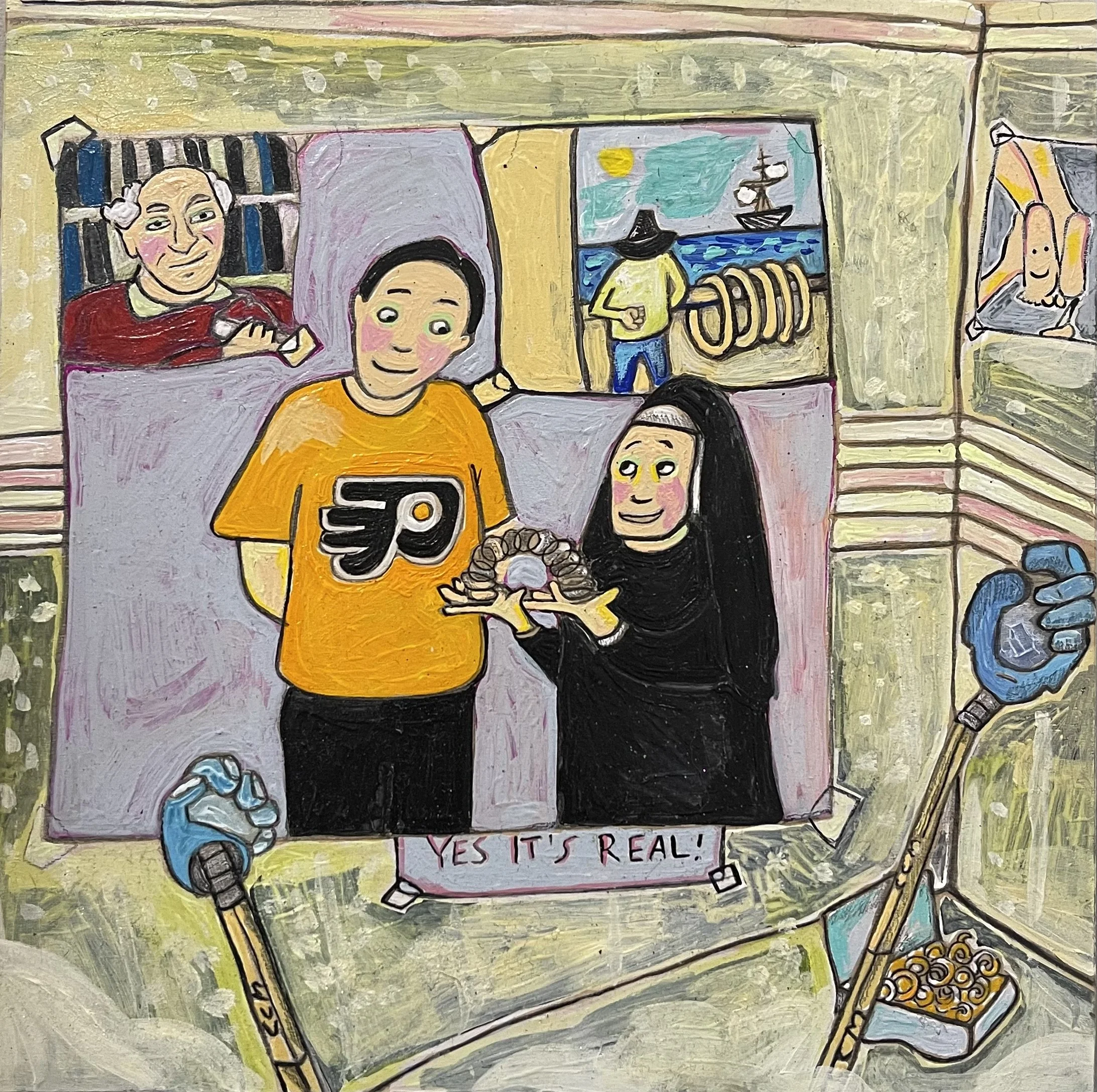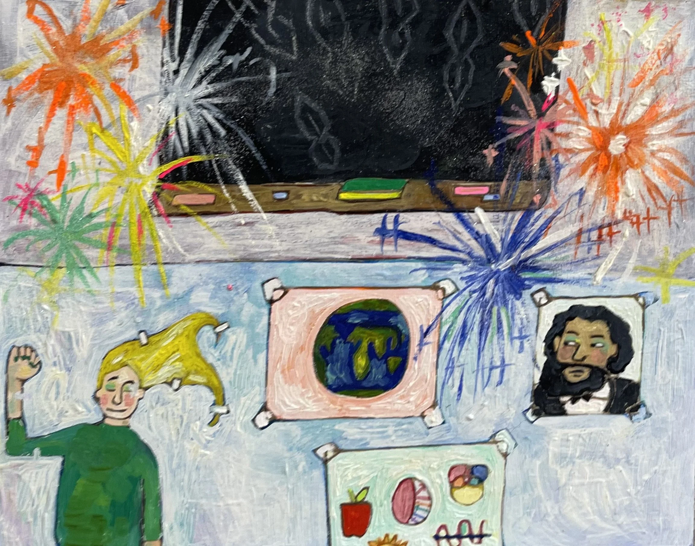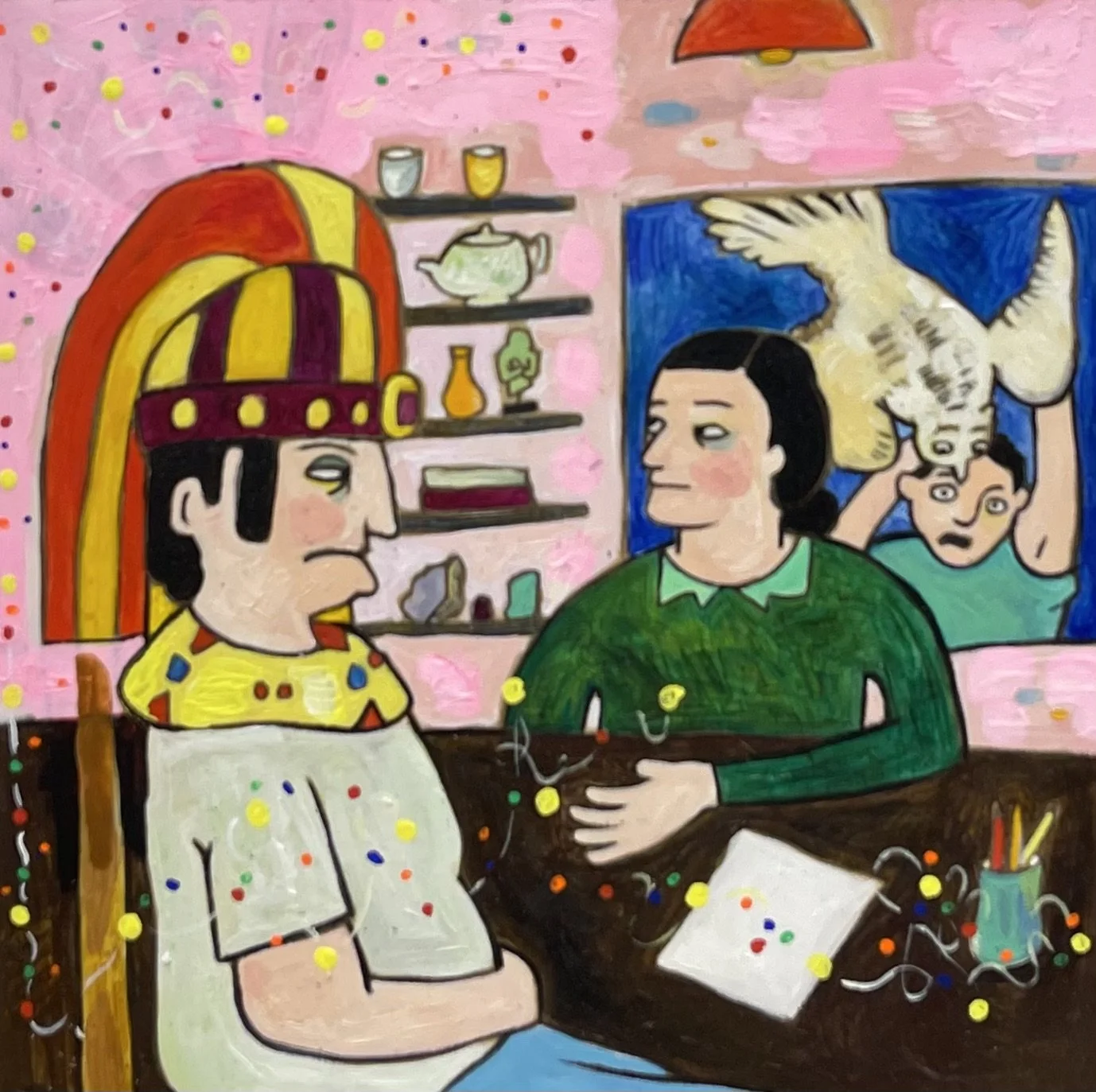 Buddhist teacher Dzongsar Khyentse Rinpoche has said that a knife becomes sharp as the result of "two exhaustions"--the exhaustion of the sharpening stone and the exhaustion of the metal. In the same way, he continues, "enlightenment is the result of the exhaustion of obscurations and the exhaustion of the antidote of obscurations." Liz Scheer sharpens the knife of her 'painting-poems' by rubbing together two disparate narratives (one visual and one verbal) that have respectively 'maxed out' their claims to reality. By pairing small jewel-toned paintings with patches of fiction pulled from a nonexistent ur-text, Scheer's work portrays the unexpected clarity that arises in moments of spiritual depletion. Through its uncanny iconography born from New Age paraphernalia and the culture of New England and the Midwest, Scheer's work portrays a kind of quotidian transcendence suffused with poignancy and humor.