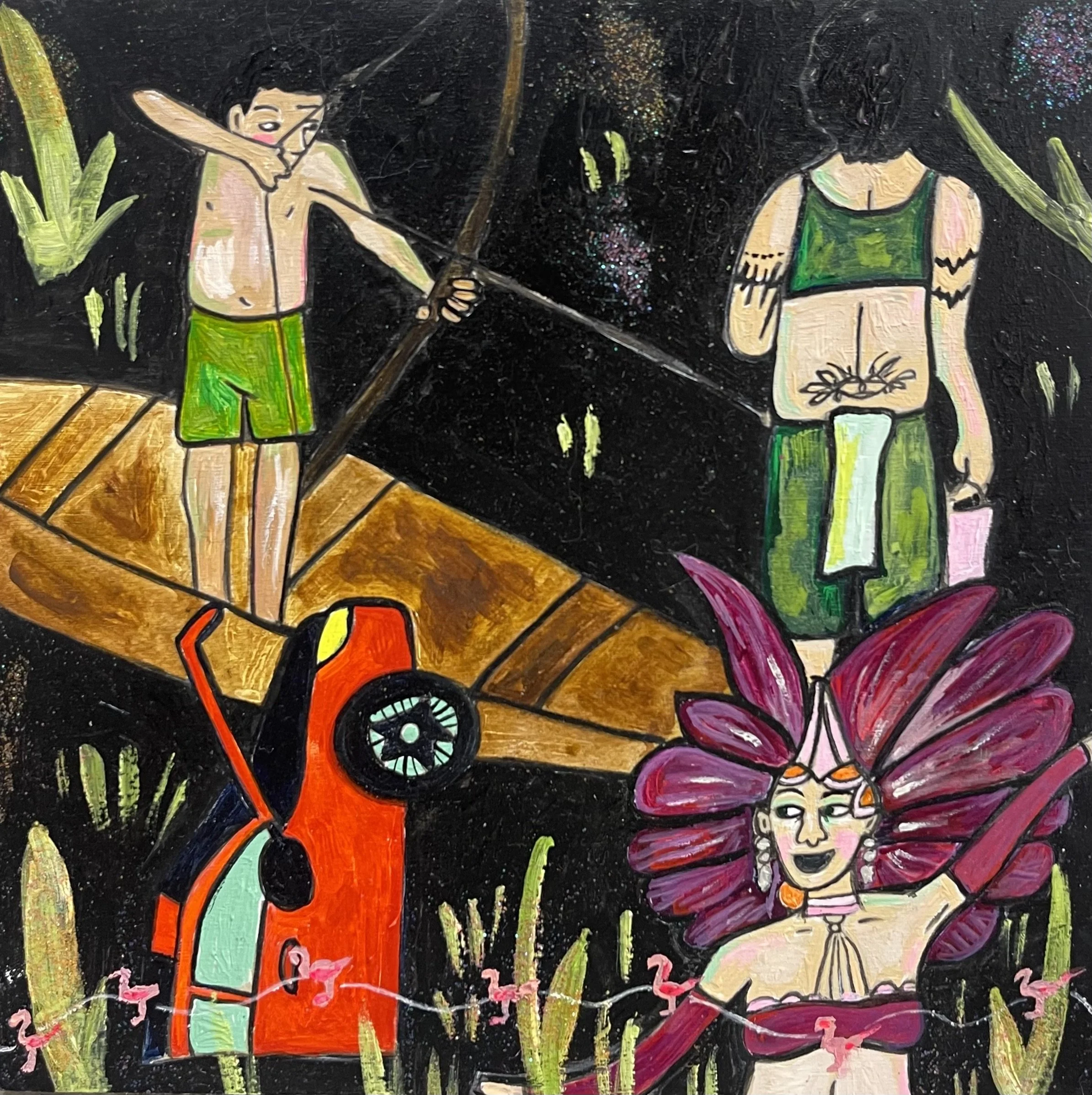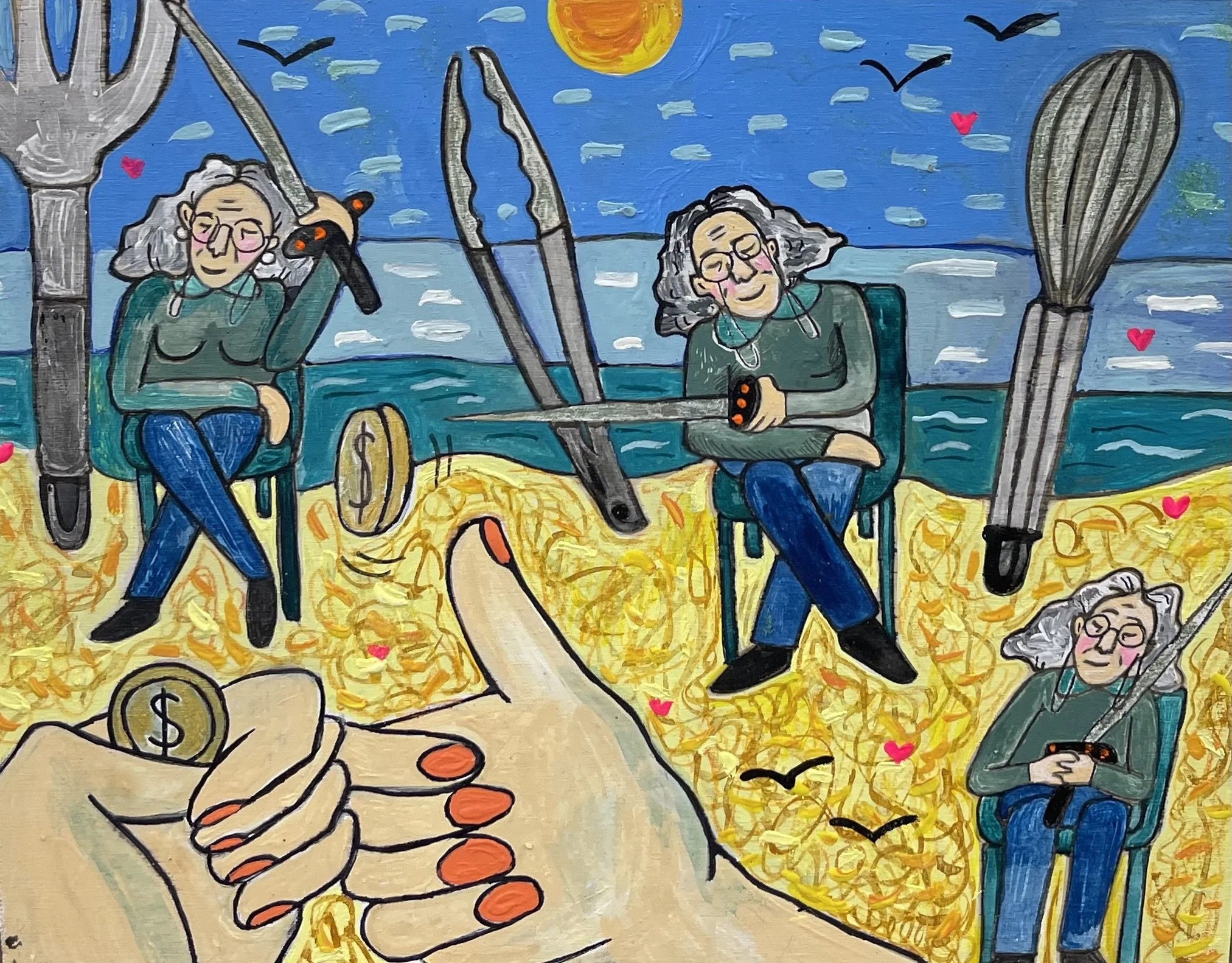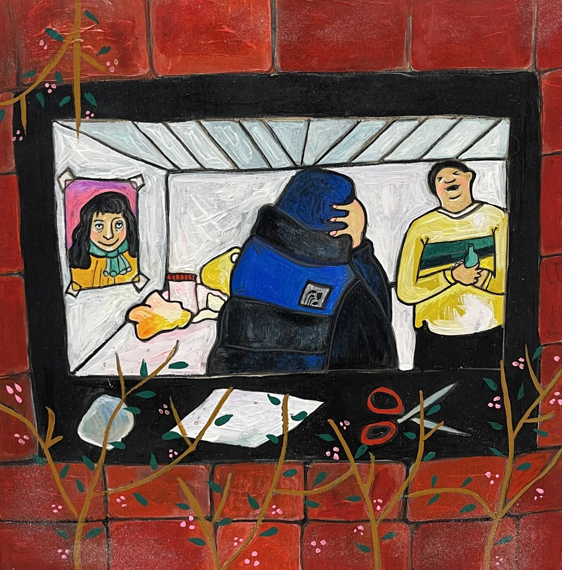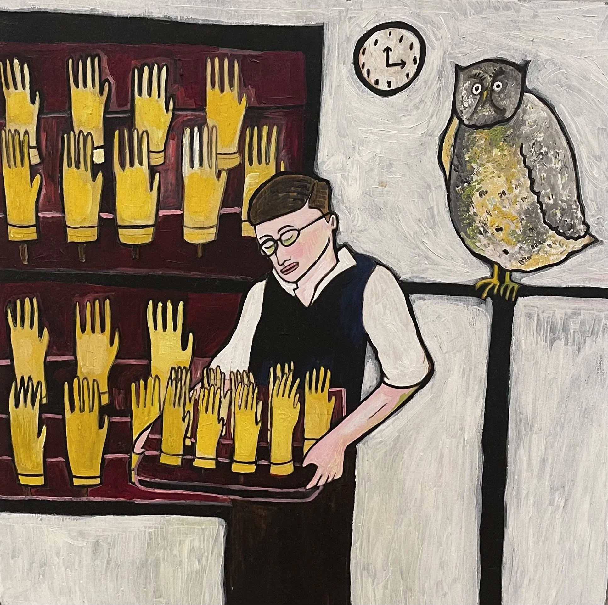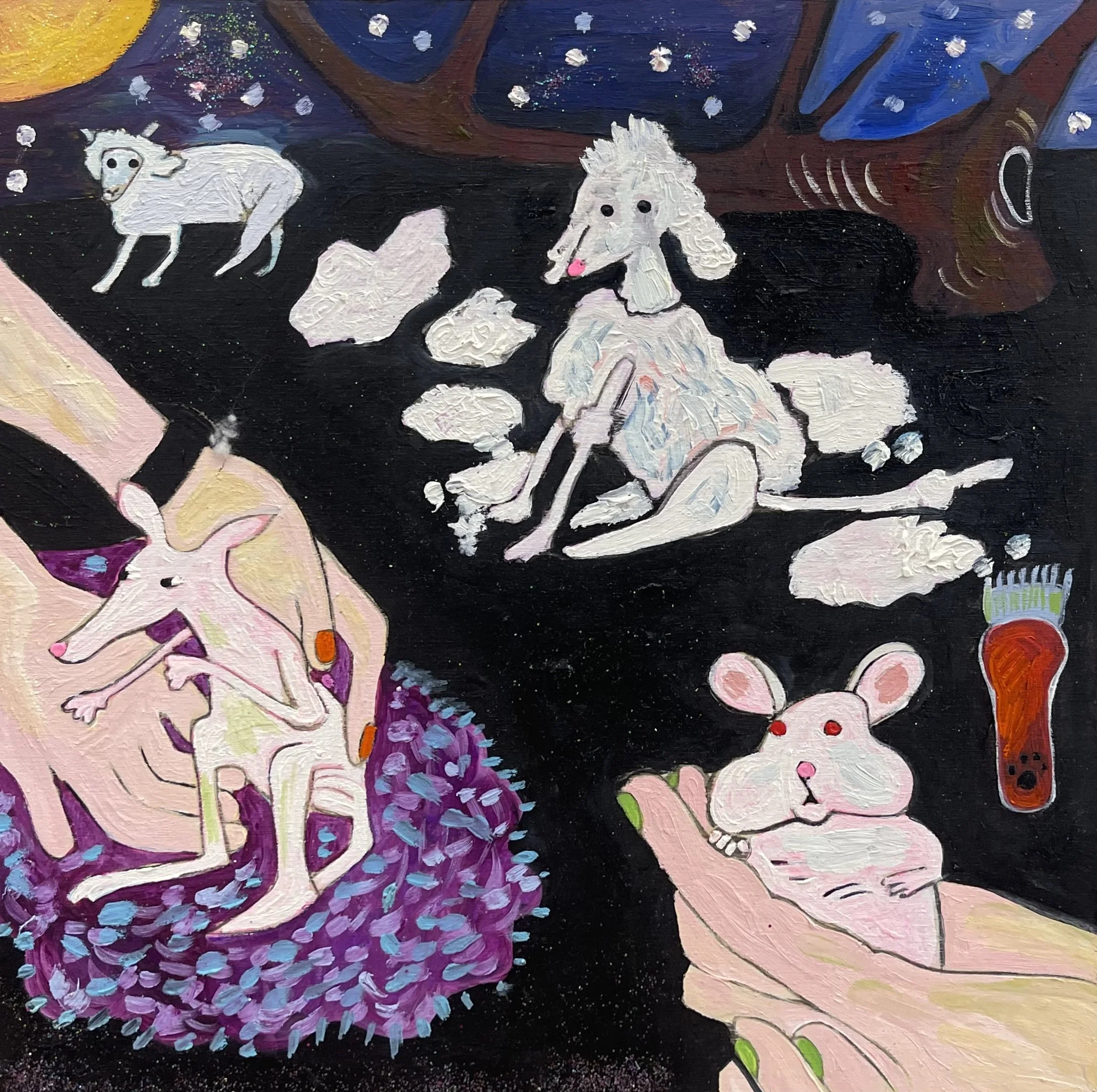 Buddhist teacher Dzongsar Khyentse Rinpoche has said that a knife becomes sharp as the result of "two exhaustions"--the exhaustion of the sharpening stone and the exhaustion of the metal. In the same way, he continues, "enlightenment is the result of the exhaustion of obscurations and the exhaustion of the antidote of obscurations." Liz Scheer sharpens the knife of her 'painting-poems' by rubbing together two disparate narratives (one visual and one verbal) that have respectively 'maxed out' their claims to reality. By pairing small jewel-toned paintings with patches of fiction pulled from a nonexistent ur-text, Scheer's work portrays the unexpected clarity that arises in moments of spiritual depletion. Through its uncanny iconography born from New Age paraphernalia and the culture of New England and the Midwest, Scheer's work portrays a kind of quotidian transcendence suffused with poignancy and humor.